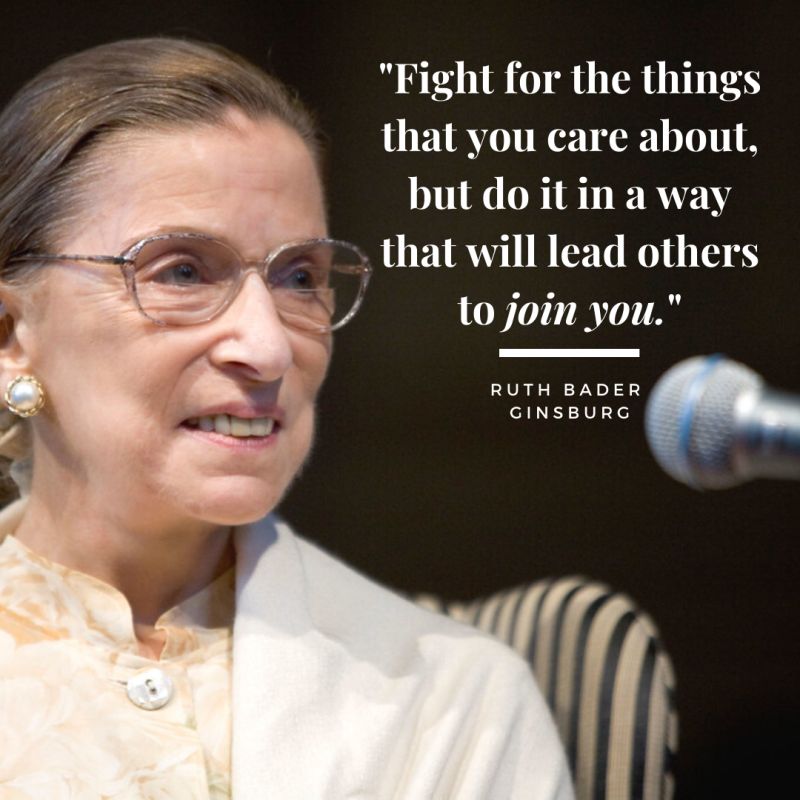Ruth and Martin were married for 56 years, until his death due to cancer on June 27, 2010. She loved him dearly and fondly remembered him as ”the only young man I dated who cared that I had a brain.” Martin is quoted for saying, “My wife doesn’t give me any advice about cooking and I don’t give her any advice about the law.” She also had a collection of lace jabots from around the world. She had a black and gold one with faceted stones that she wore when issuing her dissents. When issuing a majority opinion, she wore a yellow and cream one with crystals; it was a gift from her law clerks. She served on the United States Supreme Court for 27 years. She passed away on September 18, 2020.