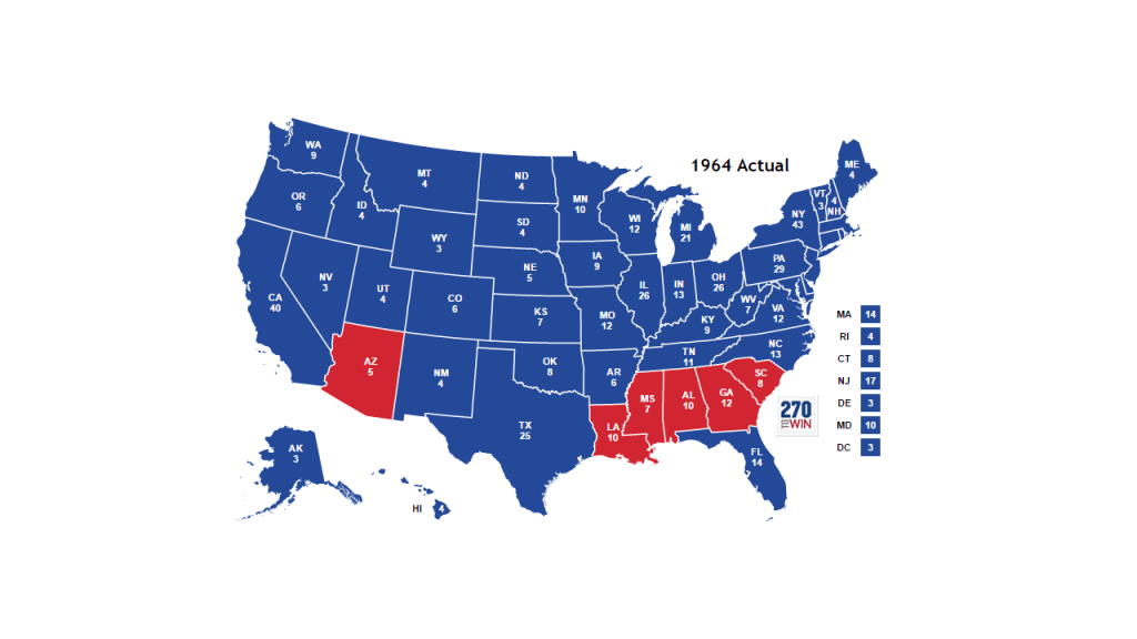 Johnson carried 44 out of 50 states and the District of Columbia. The electoral results from the November 3 election were 486 (Johnson) to 52 (Goldwater).