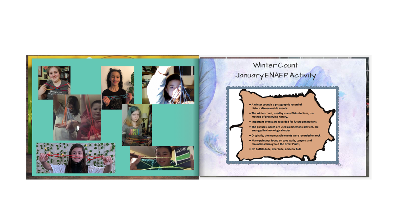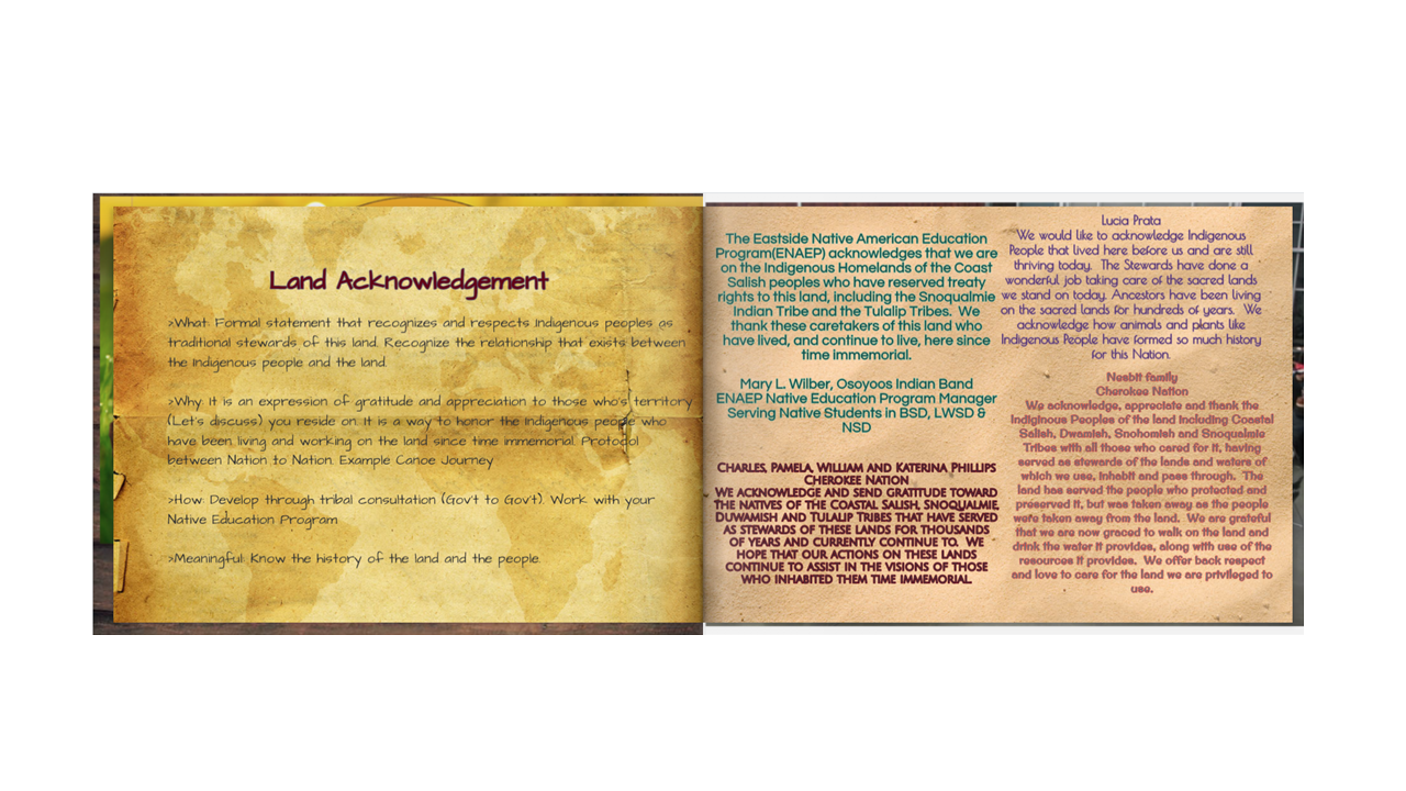 Last year was a difficult year for all of us to get our feet back on the ground and going the directions we need to go. This was especially true for the kids in school, who were struggling for their second year of disconnection from their social structure. Seattle’s Eastside has a strong group of students that are more resilient than they credit themselves with. These students share a common bond of Native heritage and ancestry and typically meet during the school year’s months once each week, Dedication can be fierce. The group, ENAEP- Eastside Native Education Program, is the promise of Title 6 to provide public education regarding Native Aboriginal history, and the fruit of a dedicated educator, Mary Wilber, provided to children and their families regarding Native history, mythology, science, technology, culture and anything else she can enrich young minds with. As part of the group, I partnered with Mary for 2020-21 school year to help the students build a book of their history and present. I hope you enjoy the wonderful pieces that they brought for us to put together. Their passion is visible.
